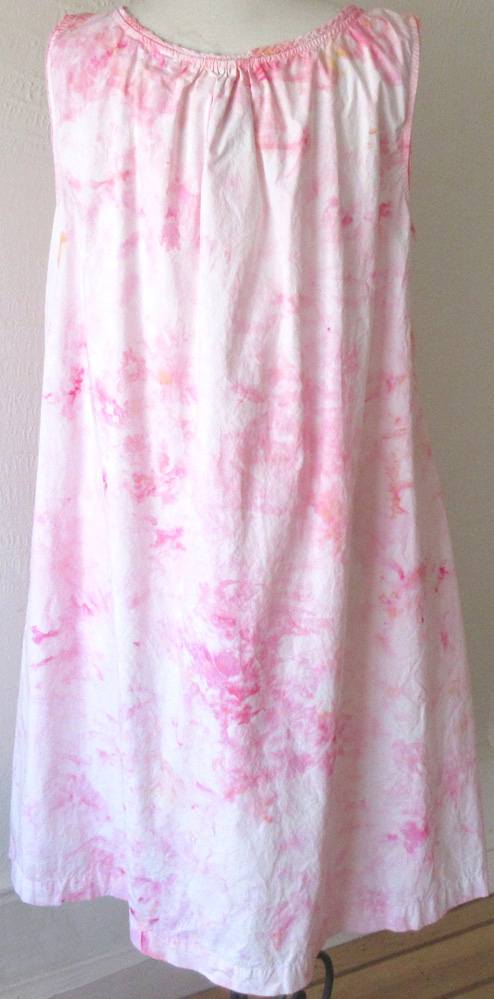 white cotton poplin ice-dyed in "melted berries and cream" [shades of